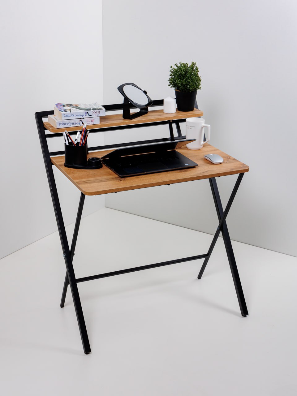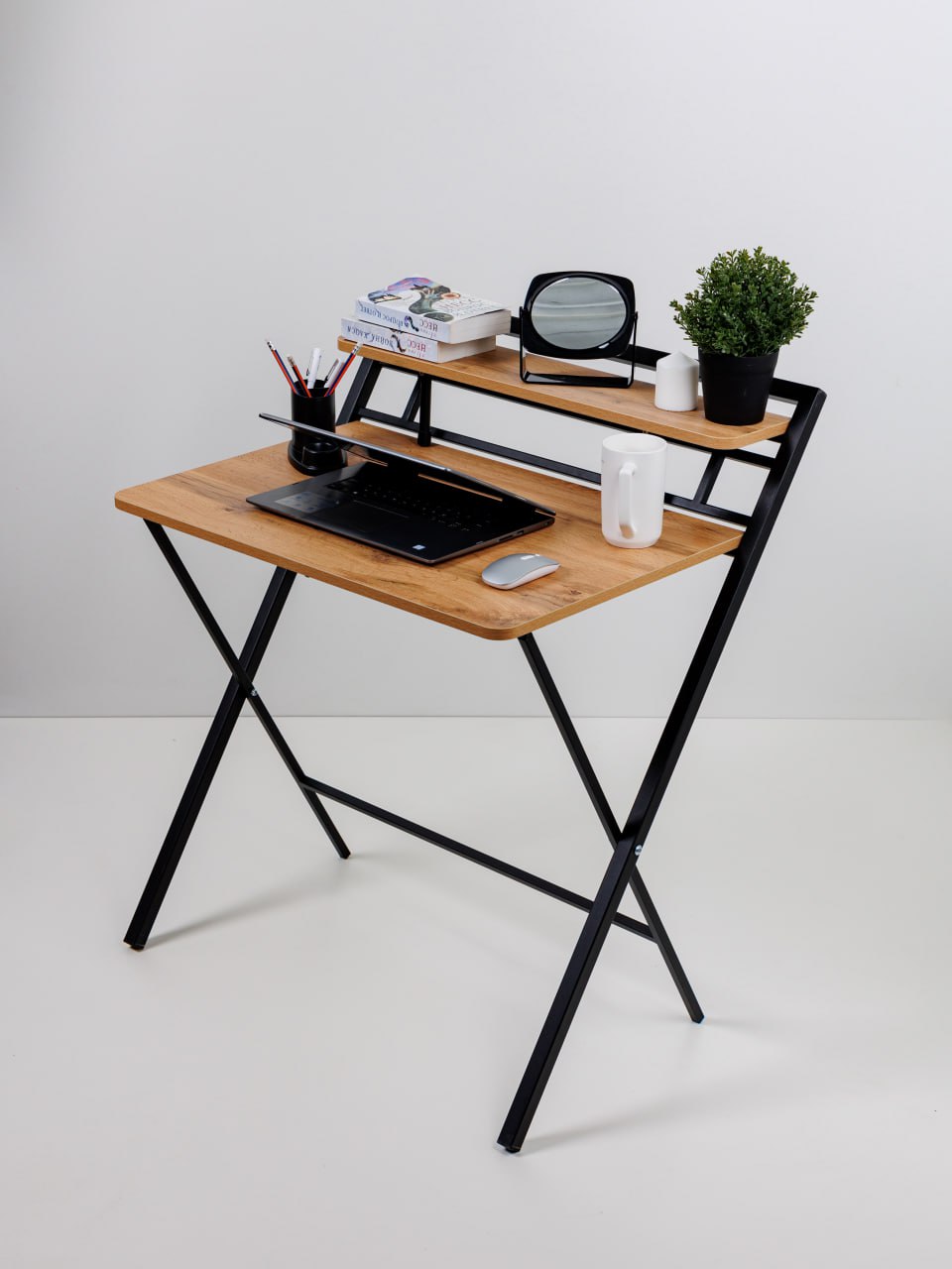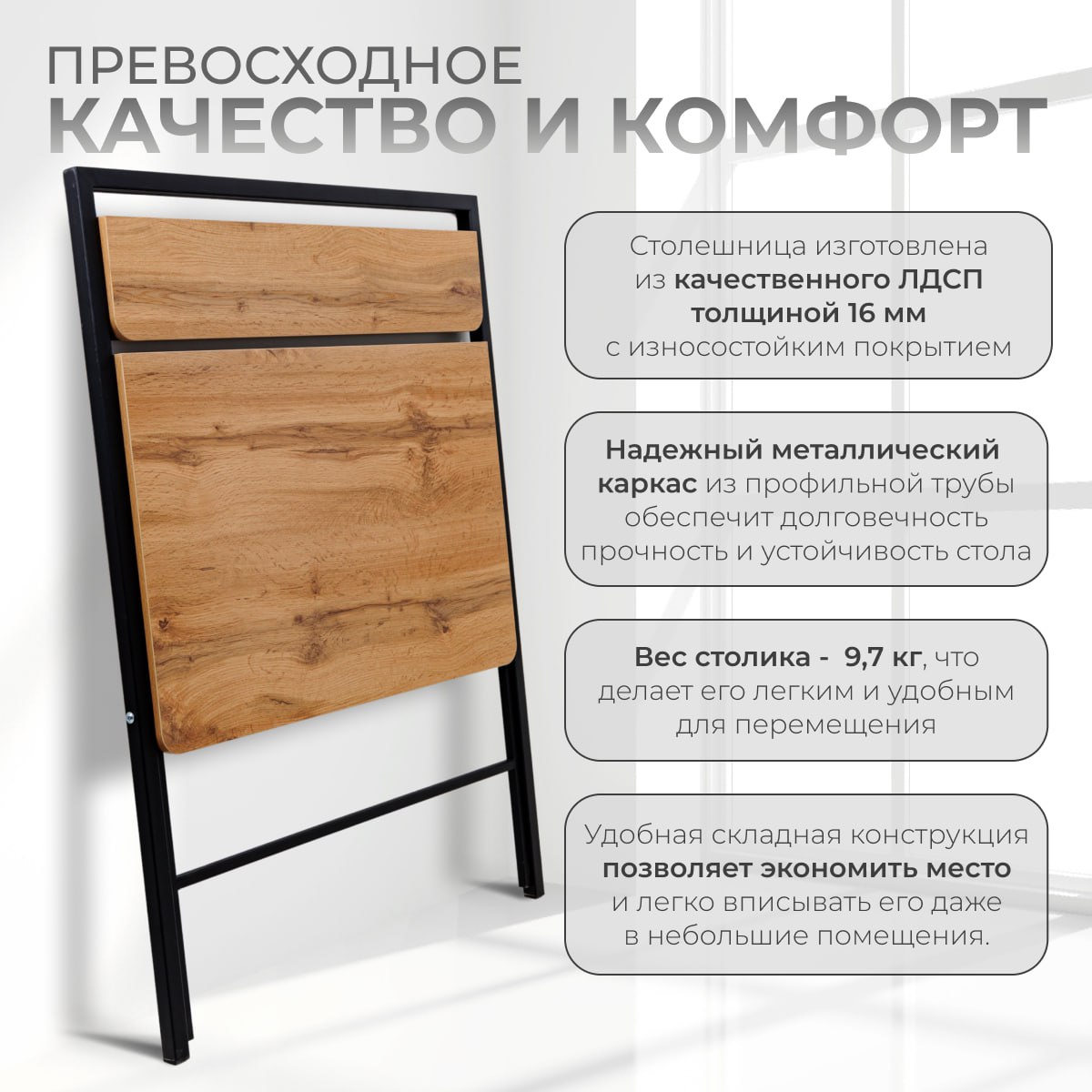 Складной стол в стиле лофт — это отличное решение для создания удобной рабочей зоны. Стол-трансформер - это универсальное решение для современного дома или офиса. Благодаря своему функционалу и стильному дизайну, стол станет отличным дополнением любого интерьера. Его эргономичный дизайн и продуманная конструкция делают его идеальным дополнением к вашему ноутбуку. Этот стол станет прекрасным элементом интерьера вашей квартиры или загородного дома. Благодаря складной конструкции, он помогает сэкономить место и легко вписывается даже в небольшие помещения. Стол оснащён металлическими ножками, которые обеспечивают его устойчивость и прочность.