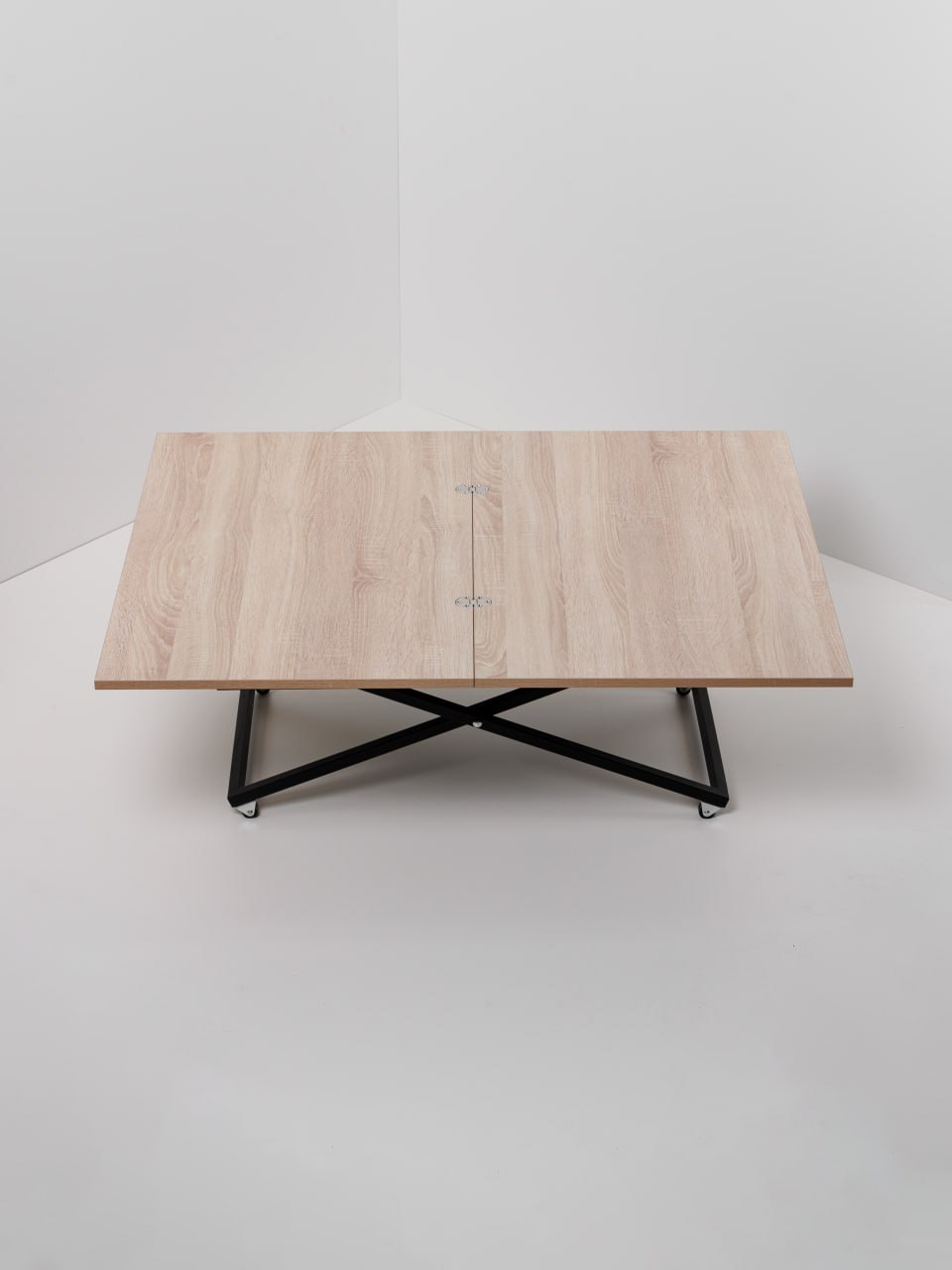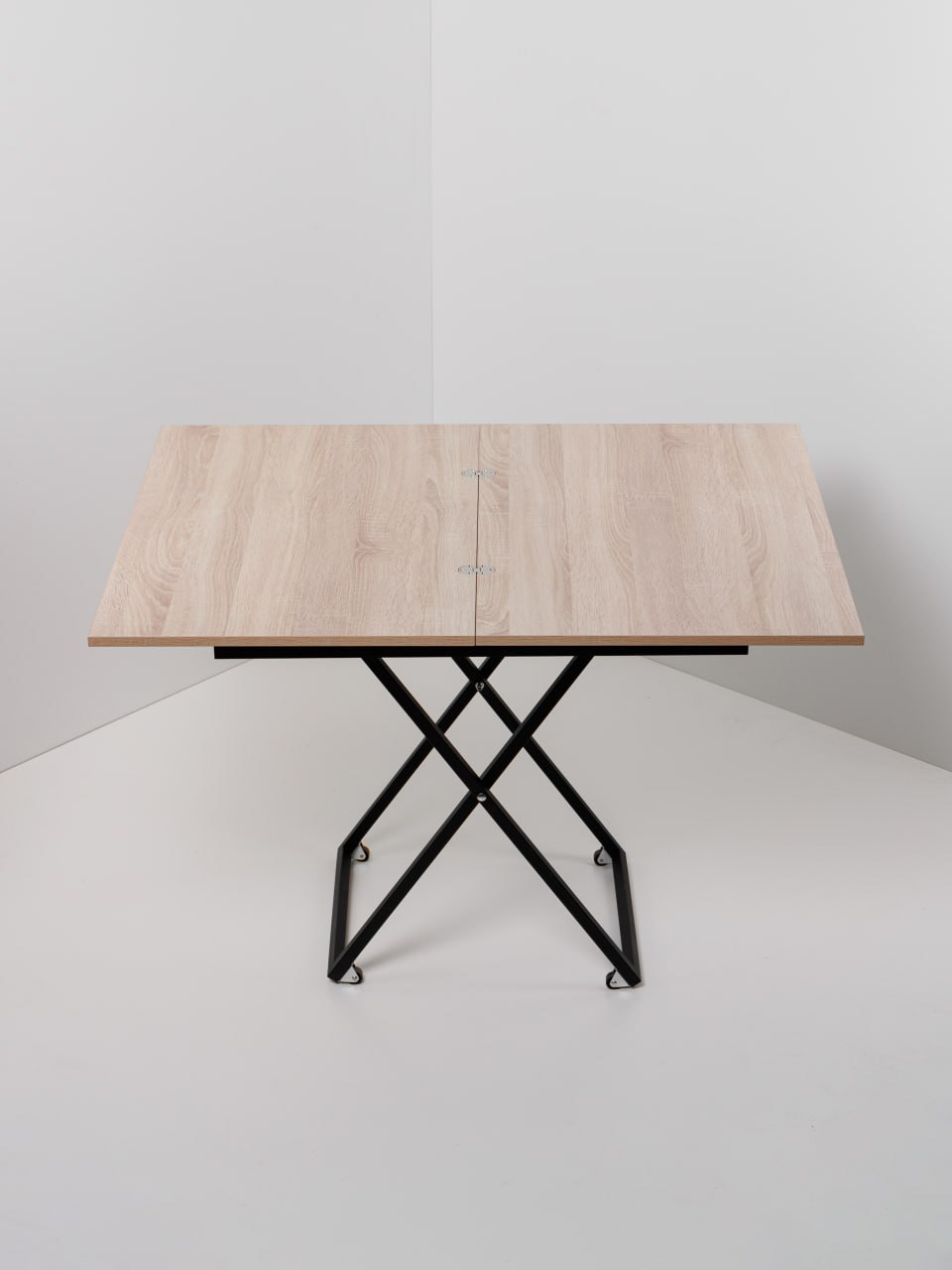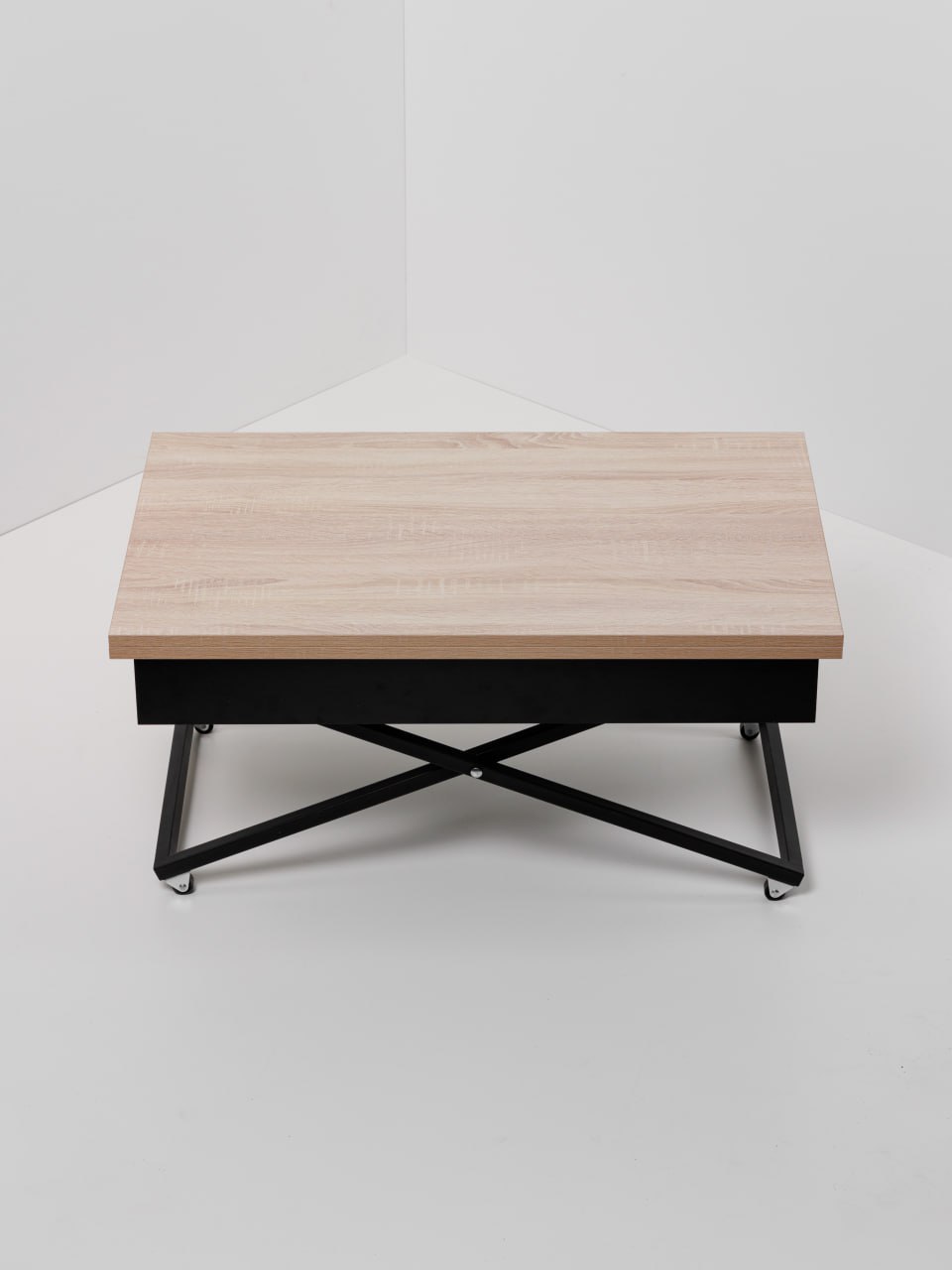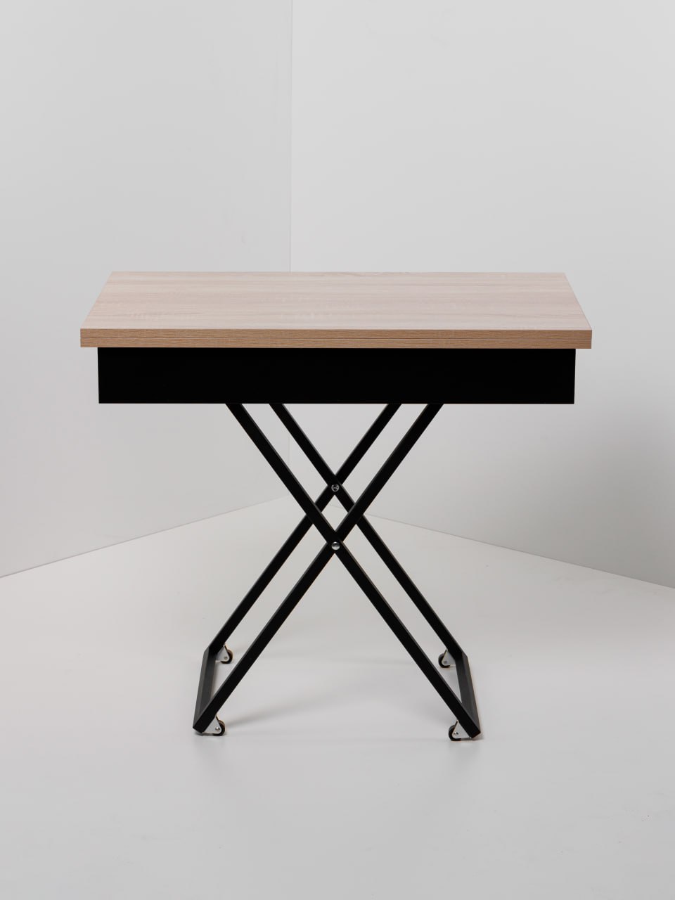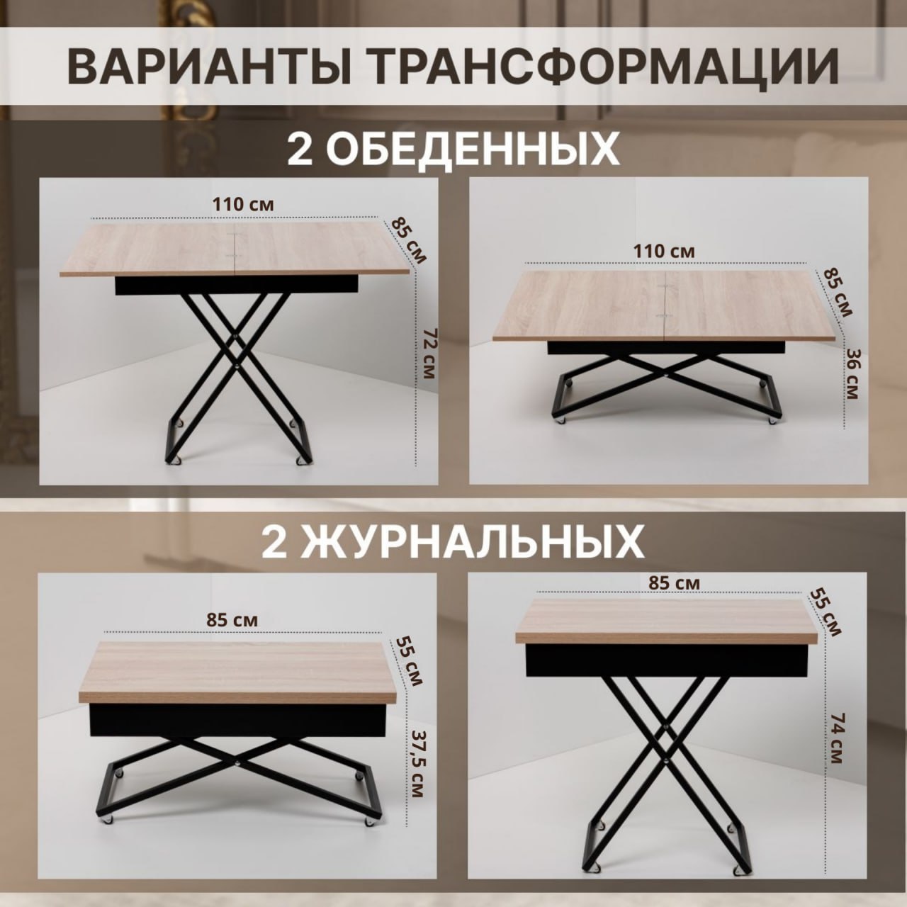 Стол-трансформер из ЛДСП Дуб Сонома - это современное и практичное решение для небольших помещений. Лаконичный дизайн стола прекрасно впишется в интерьер гостиной, лаунж-зоны или офиса, а также станет уютным дополнением для вашей гостиной. В собранном виде стол имеет размеры 55х85 см, что делает его компактным и удобным для размещения в небольших помещениях. Однако, когда приходят гости или нужно накрыть обед, стол легко трансформируется в более просторное пространство размером 85х110 см. Стол оснащен подъемным механизмом и регулировкой высоты, что позволяет удобно настроить его под различные ситуации и потребности. Стол-трансформер изготовлен из качественного ЛДСП, что обеспечивает его долговечность и устойчивость к повреждениям. Металлическое основание и столешница толщиной 1,6 см гарантируют прочность и надежность конструкции.